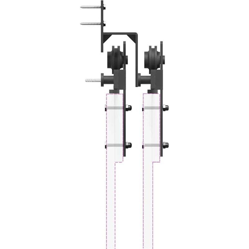Dzięki temu zestawowi okuć do drzwi przesuwnych możesz łatwo zamontować podwójne szyny, aby drzwi przesuwały się jedne przed drugimi, a drugie za sobą.