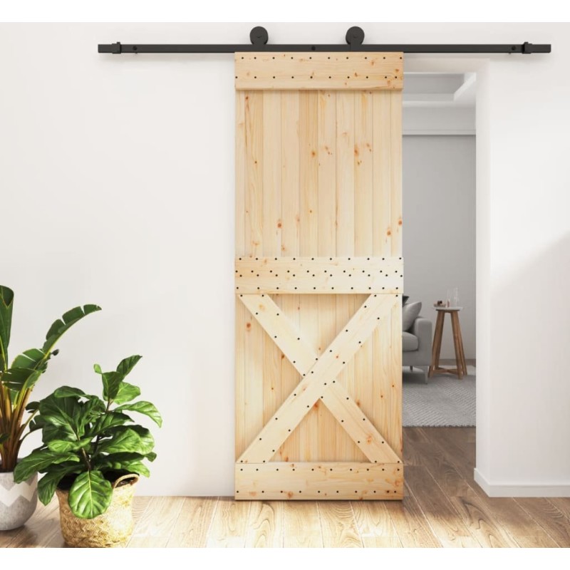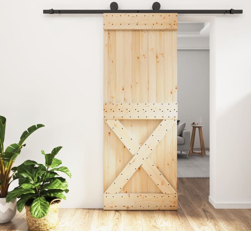 vidaXL vidaXL Drzwi przesuwne z osprzętem, 80x210 cm, lite drewno sosnowe