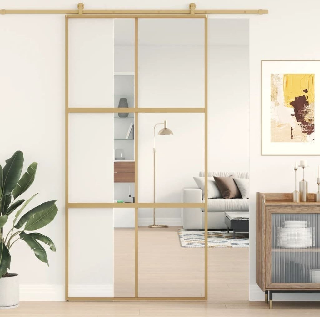 LUKSUSOWE ZŁOTE DRZWI PRZESUWNE 102,5X205CM Z PRZEZROCZYSTYM SZKŁEM ESG