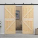 vidaXL Drzwi przesuwne z osprzętem, 80x210 cm, lite drewno sosnowe
