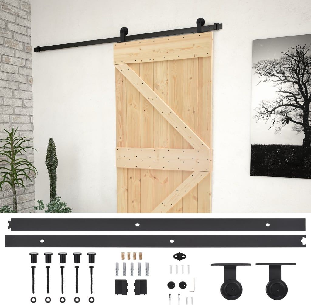 Drzwi wykonano z litego drewna sosnowego, dzięki czemu są niezwykle stabilne i trwałe. Ich naturalna powierzchnia pozwala na ozdobienie ich lub pomalowanie zgodnie z własnymi preferencjami. Przesyłka obejmuje również osprzęt do drzwi przesuwnych, który ułatwia montaż. Akcesoria z malowanej proszkowo stali zwiększają jeszcze wytrzymałość konstrukcji.