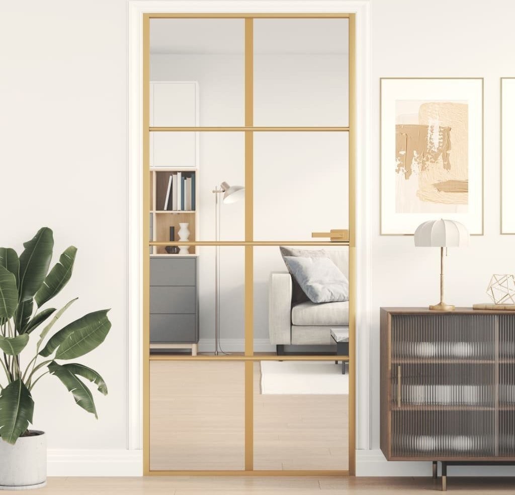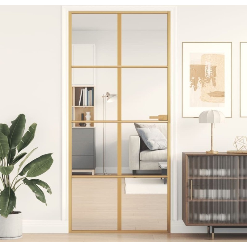 vidaXL Drzwi wewnętrzne, złote, 93x201,5 cm, szkło i aluminium