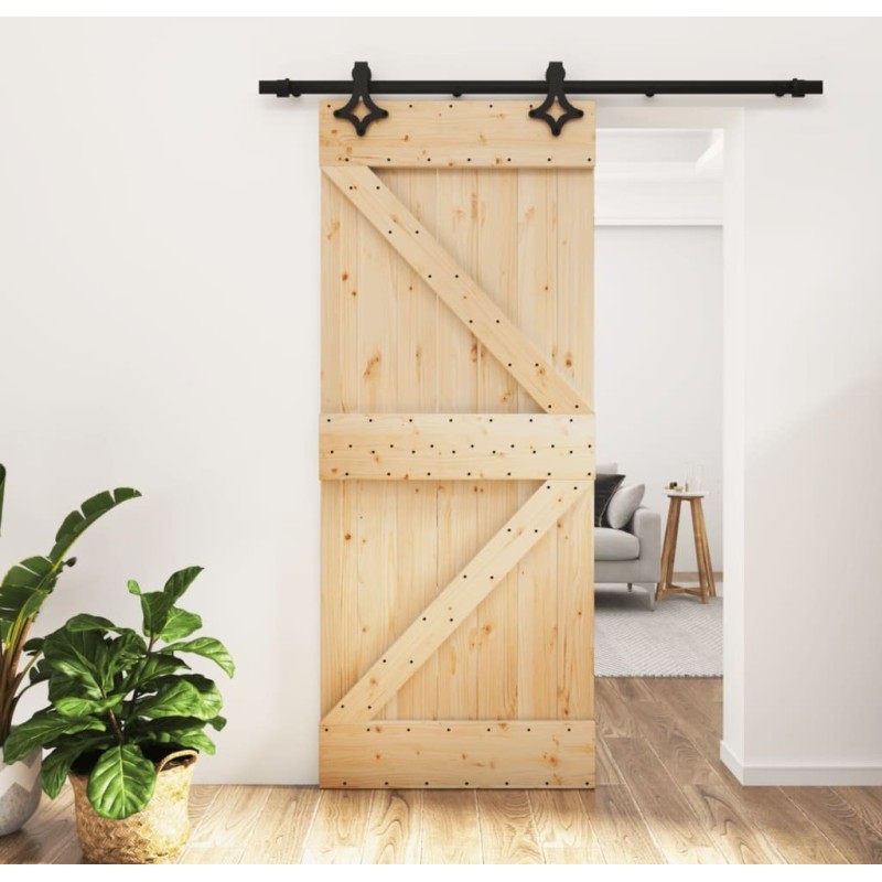 vidaXL vidaXL Drzwi przesuwne z osprzętem, 85x210 cm, lite drewno sosnowe
