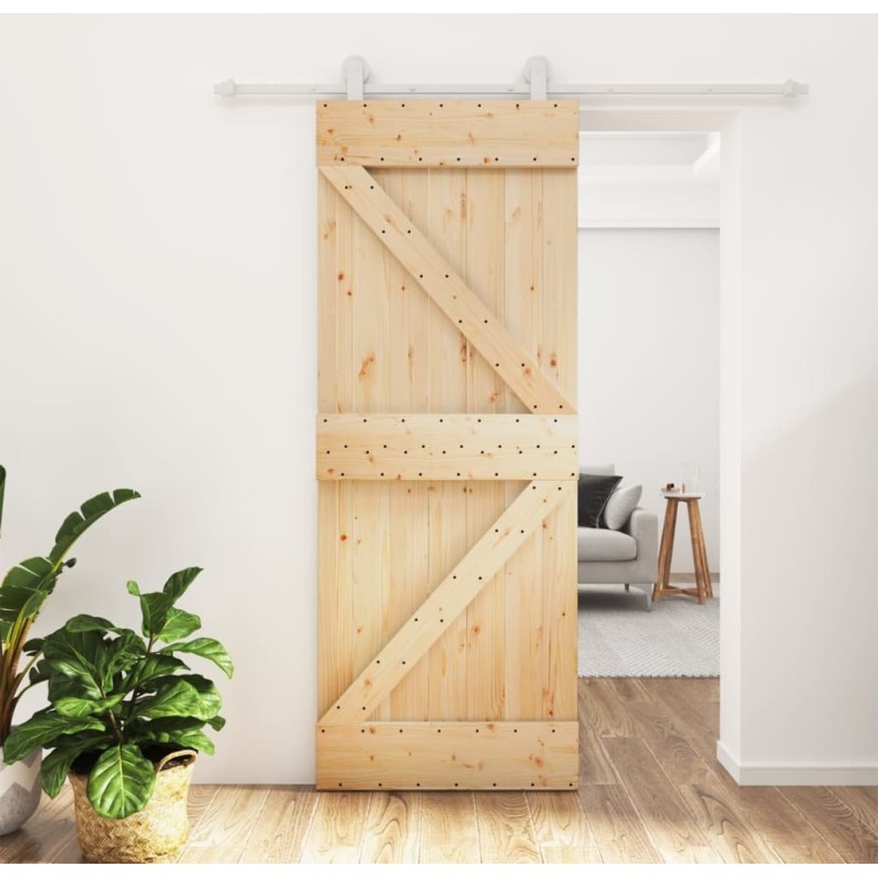 vidaXL vidaXL Drzwi przesuwne z osprzętem, 80x210 cm, lite drewno sosnowe