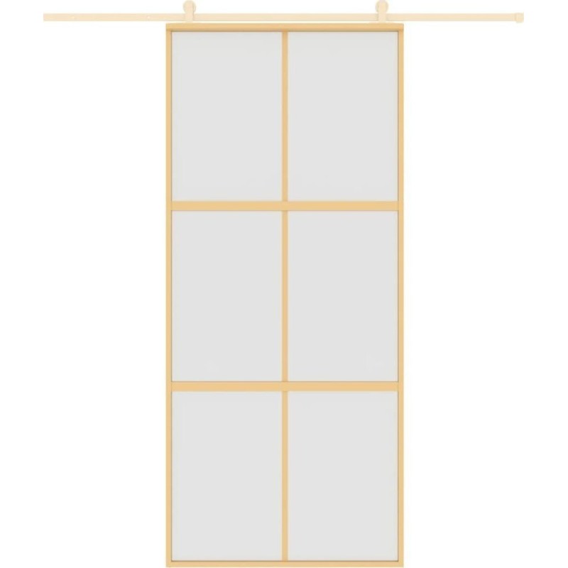 vidaXL Drzwi przesuwne, złote, 90x205 cm, mrożone szkło ESG, aluminium
