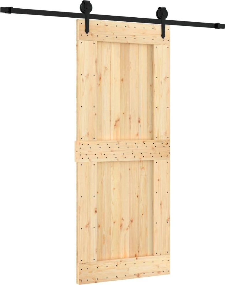 vidaXL Drzwi przesuwne z osprzętem, 85x210 cm, lite drewno sosnowe