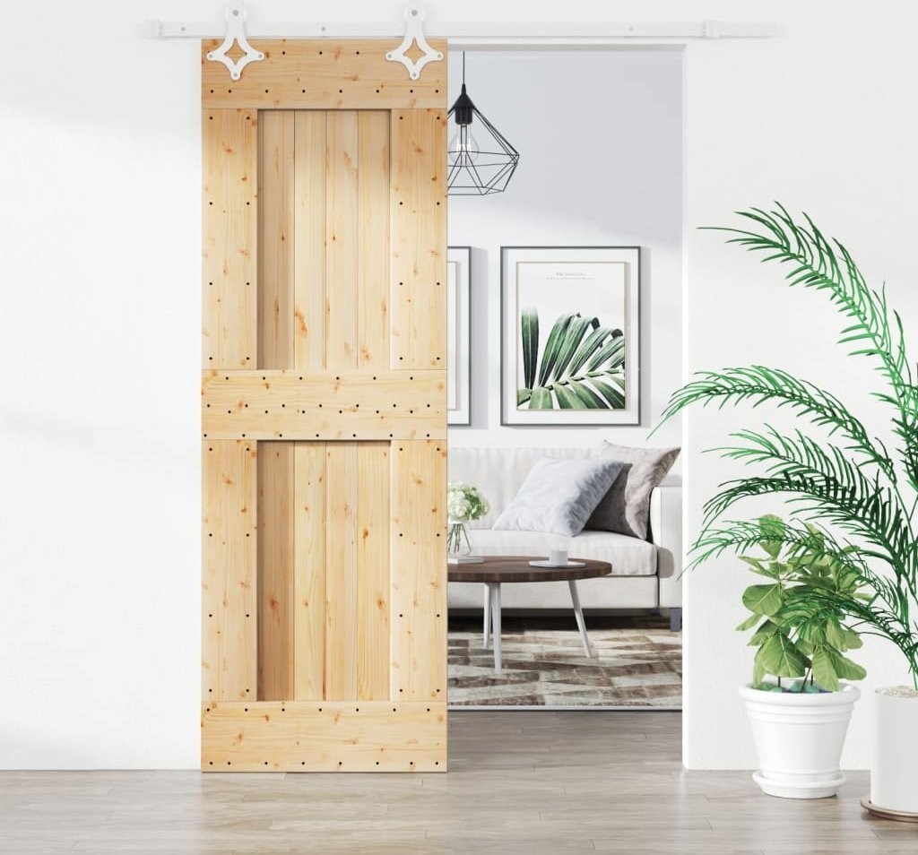 vidaXL Drzwi przesuwne z osprzętem, 70x210 cm, lite drewno sosnowe