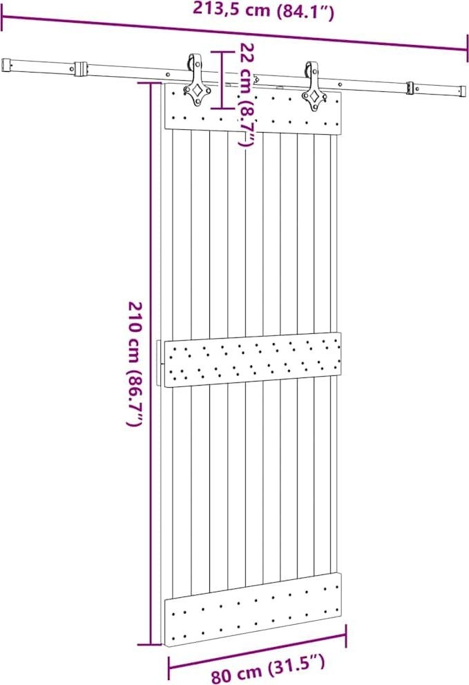 vidaXL vidaXL Drzwi przesuwne z osprzętem, 80x210 cm, lite drewno sosnowe