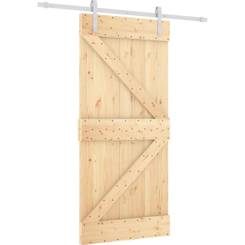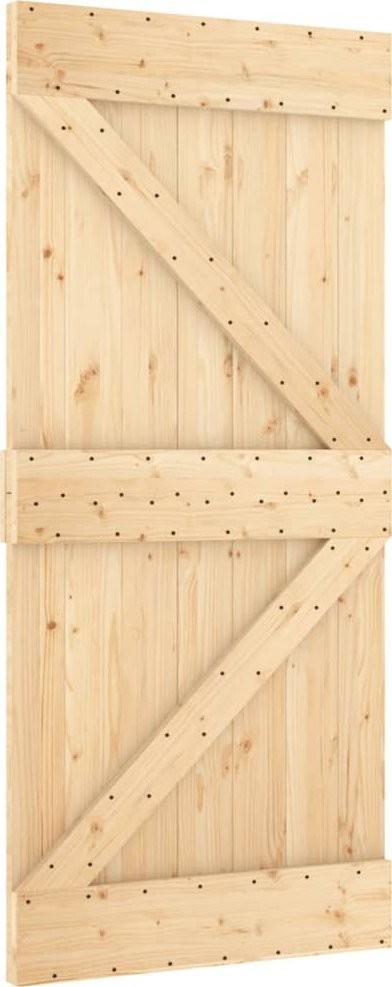 vidaXL Drzwi przesuwne z osprzętem, 90x210 cm, lite drewno sosnowe