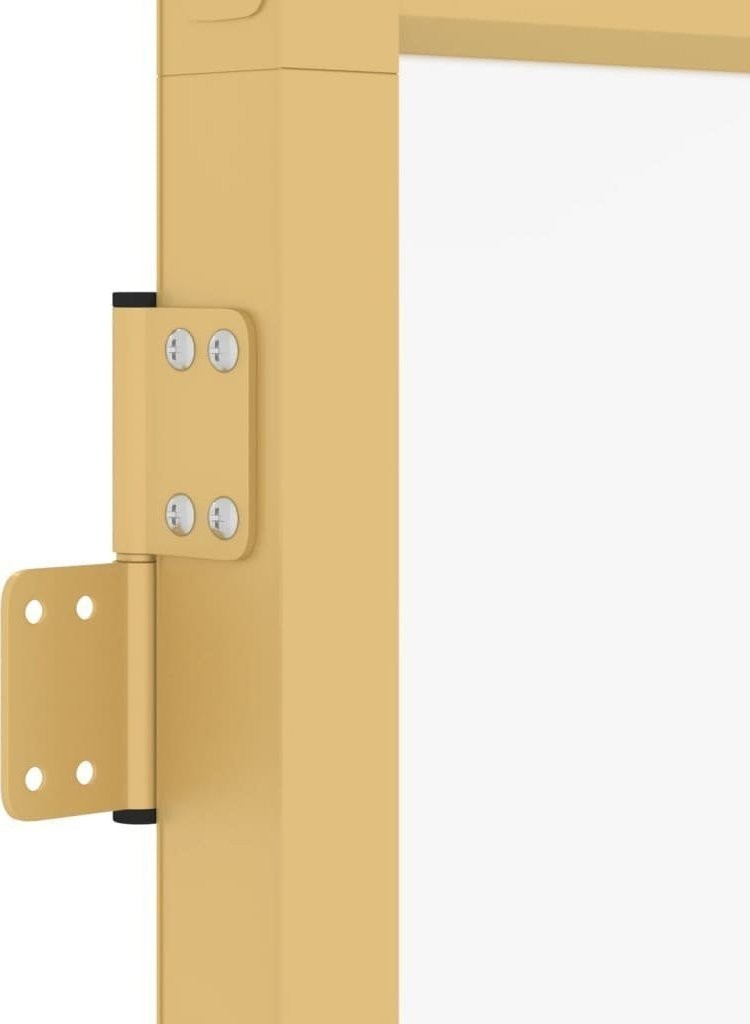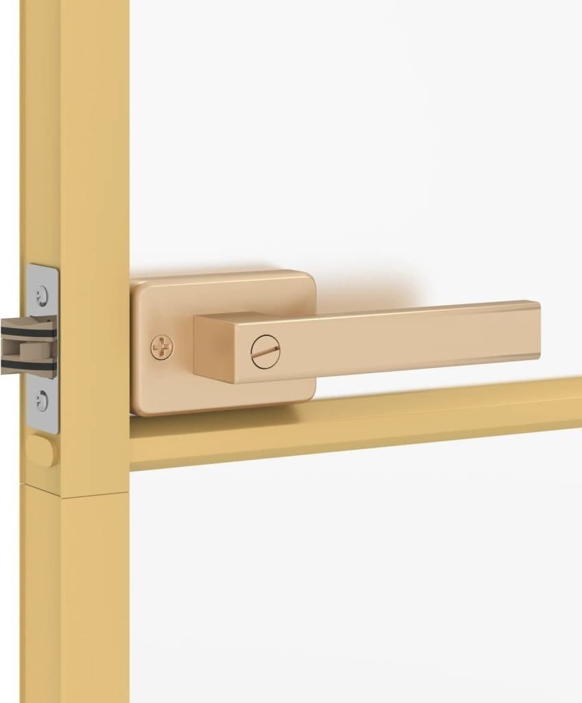 Zdobądź elegancki i stylowy wystrój swojego wnętrza dzięki tym pięknym, złotym drzwiom wewnętrznym. Szkło hartowane oferuje wyjątkową wytrzymałość na uderzenia, zarysowania oraz działanie wiatru. Solidna aluminiowa rama zapewnia stabilność i trwałość drzwi. Dodatkowo, matowe szkło panelu zapewnia prywatność w domu i biurze. Szeroka aluminiowa rama nadaje drzwiom nowoczesny i luksusowy wygląd. Ważne informacje: Drzwi te należy zamontować w futrynie o grubości 35-50 mm.