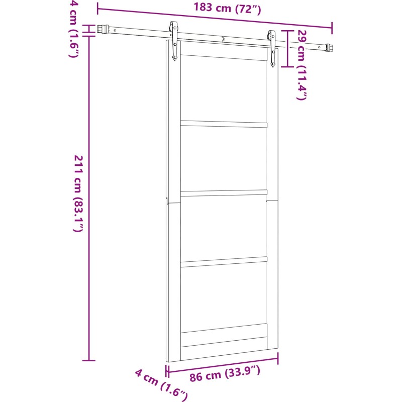 Drzwi przesuwne vidaXL z zestawem okuć 86x211 cm Lite drewno sosnowe, Drzwi wewnętrzne vidaXL 'ORKDAL'86x211x4 cm Lite drewno so
