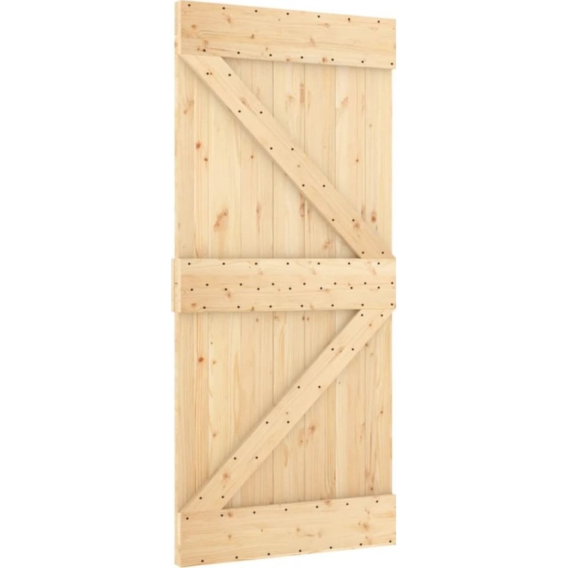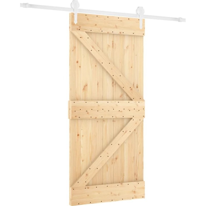 vidaXL Drzwi przesuwne z osprzętem, 90x210 cm, lite drewno sosnowe
