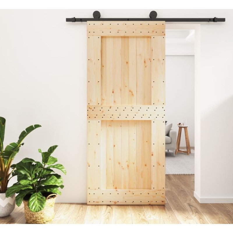 vidaXL Drzwi przesuwne z osprzętem, 90x210 cm, lite drewno sosnowe