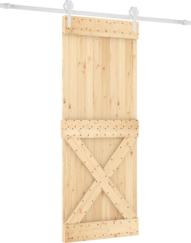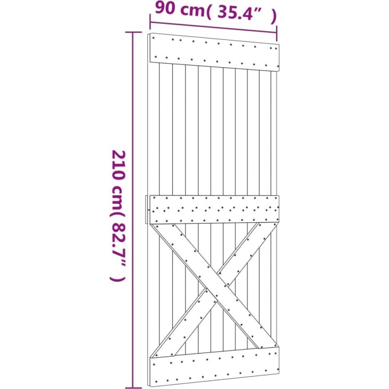 vidaXL Drzwi przesuwne z osprzętem, 90x210 cm, lite drewno sosnowe