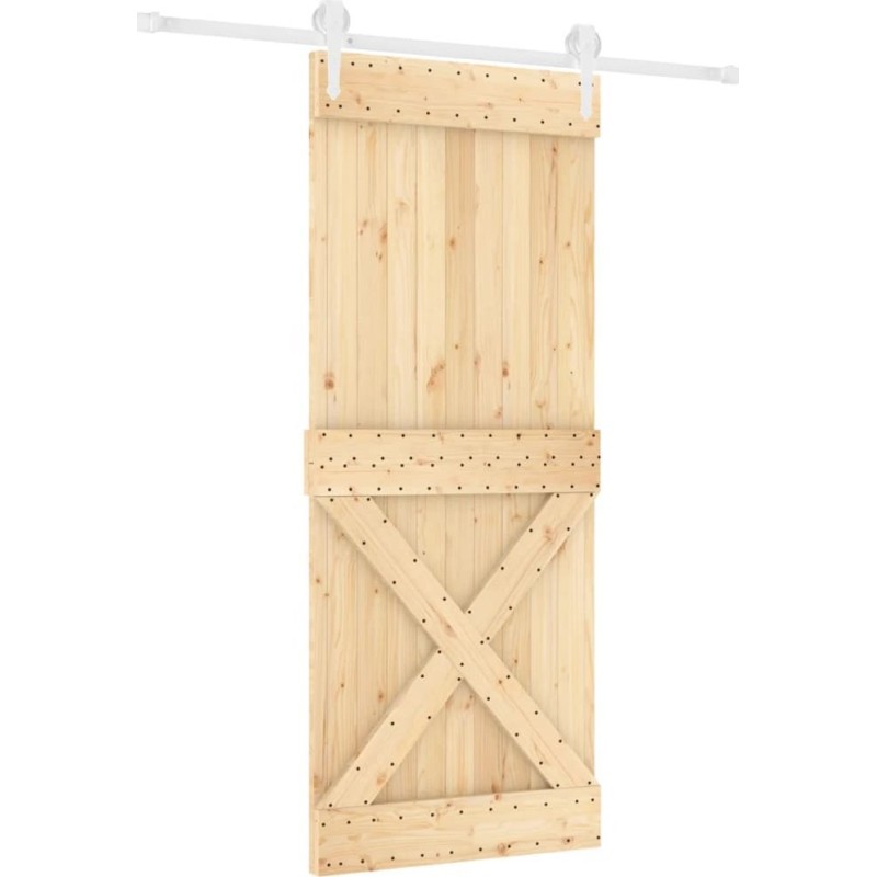 vidaXL Drzwi przesuwne z osprzętem, 85x210 cm, lite drewno sosnowe