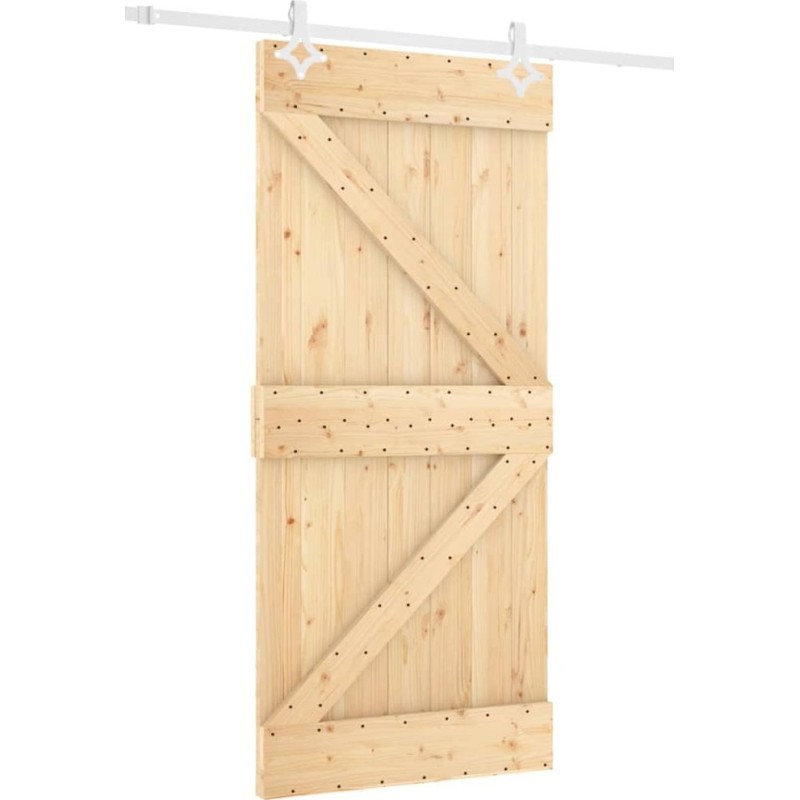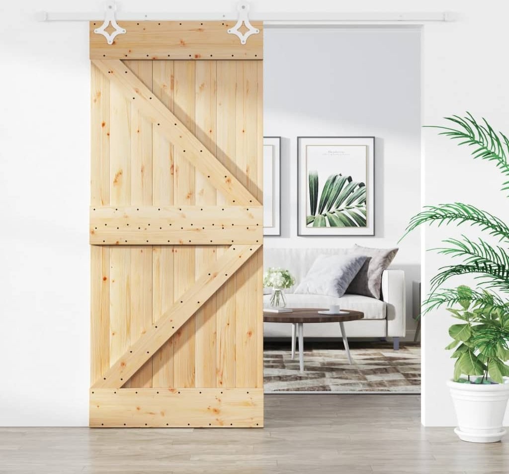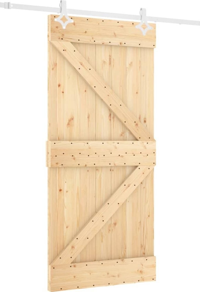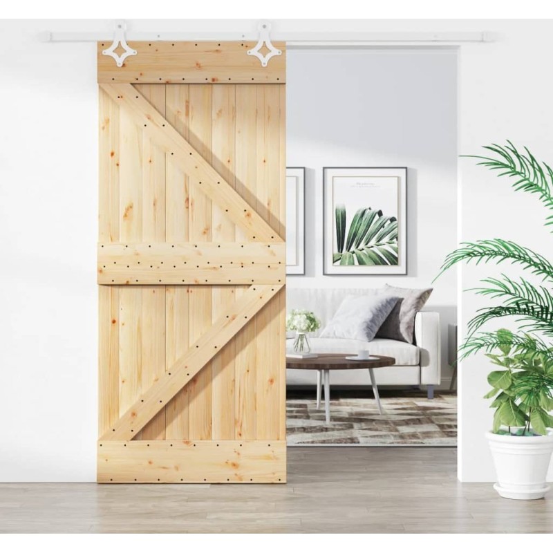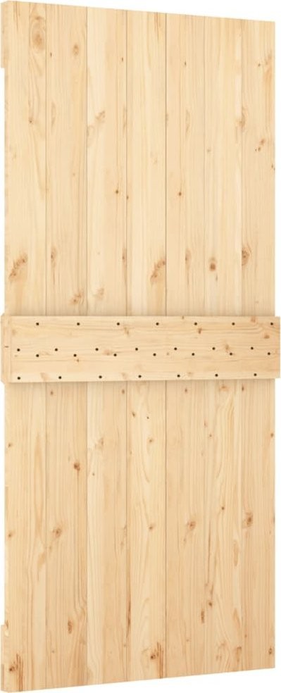vidaXL Drzwi przesuwne z osprzętem, 90x210 cm, lite drewno sosnowe