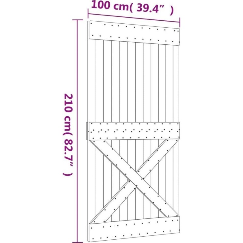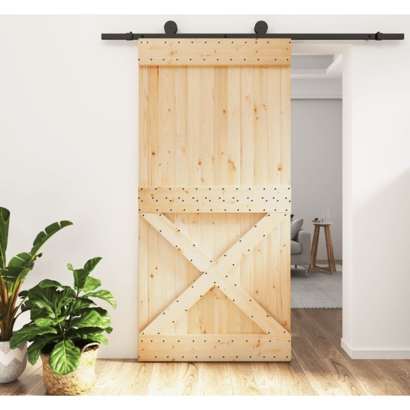 vidaXL Drzwi przesuwne z osprzętem, 100x210 cm, lite drewno sosnowe