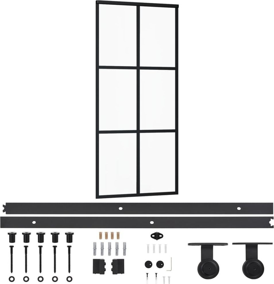 vidaXL Drzwi przesuwne z osprzętem, szkło ESG i aluminium, 90x205 cm