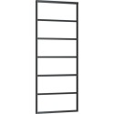 SpecifikacjeDrzwi przesuwne: Kolor: Przezroczysty i czarny, Materiał: szkło ESG z czarnym nadrukiem, aluminium, Rozmiar drzwi: 76 x 205 cm (S x W), Grubość szkła: 5 mm, Grubość drzwi: 2 cm, Zestaw akcesoriów: Kolor: Czarny, Materiał: Stal malowana proszkowo, Całkowita długość szyn przesuwanych: 213,5 cm, Maksymalne obciążenie: 100 kg, Odpowiedni rozmiar drzwi: 107 cm szerokości, 35-45 mm grubości z 2 otworami po każdej stronie, Wymagany montaż: Tak.