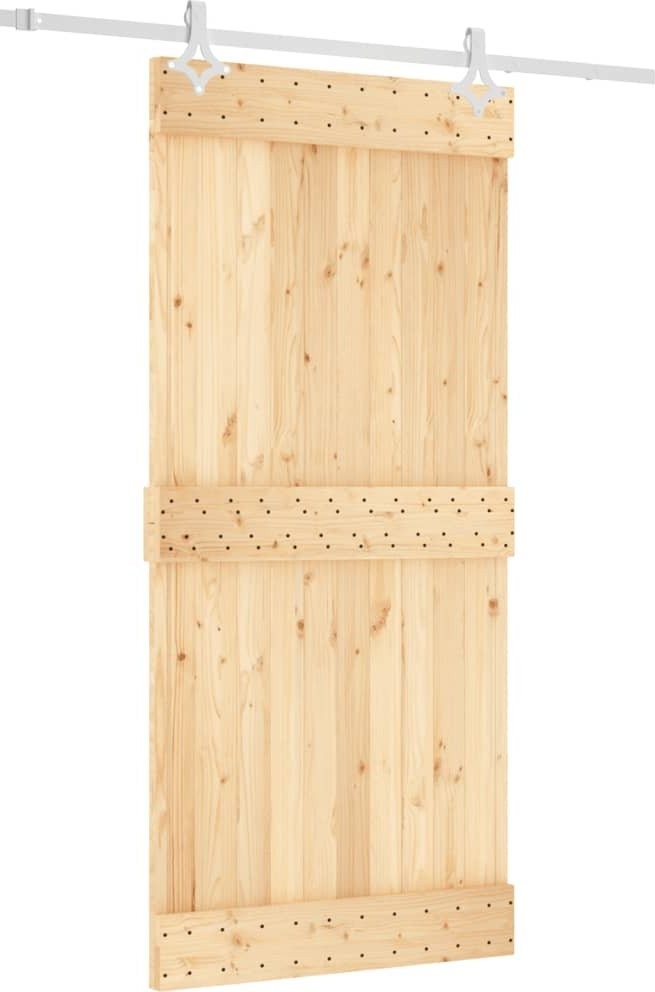 vidaXL Drzwi przesuwne z osprzętem, 95x210 cm, lite drewno sosnowe