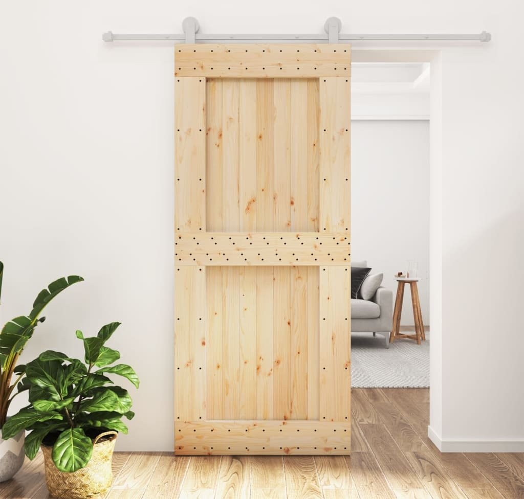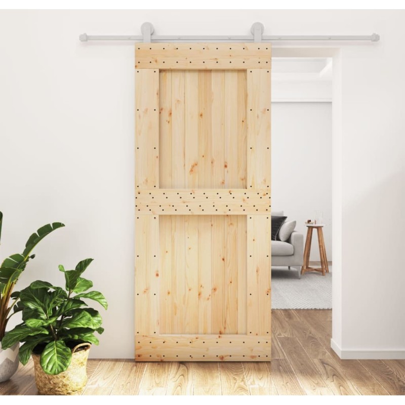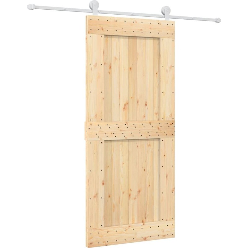 vidaXL Drzwi przesuwne z osprzętem, 90x210 cm, lite drewno sosnowe