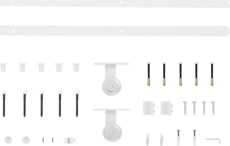 - Ciche i bezproblemowe suwanie: dzięki wewnętrznym łożyskom drzwi wewnętrzne przesuwają się gładko i cicho. W zestawie znajdują się również ograniczniki, które zapobiegają wyskoczeniu rolek, a gumowe uszczelki amortyzują uderzenia rolek i redukują hałas.
