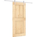 vidaXL Drzwi przesuwne z osprzętem, 90x210 cm, lite drewno sosnowe