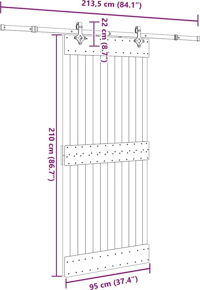 vidaXL Drzwi przesuwne z osprzętem, 95x210 cm, lite drewno sosnowe