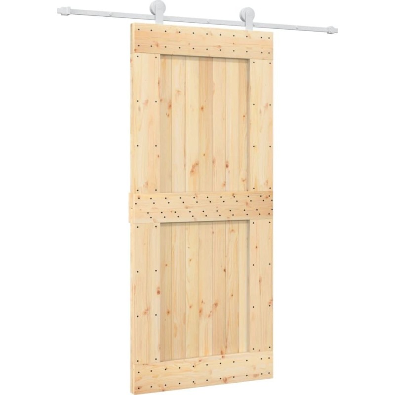 vidaXL Drzwi przesuwne z osprzętem, 90x210 cm, lite drewno sosnowe