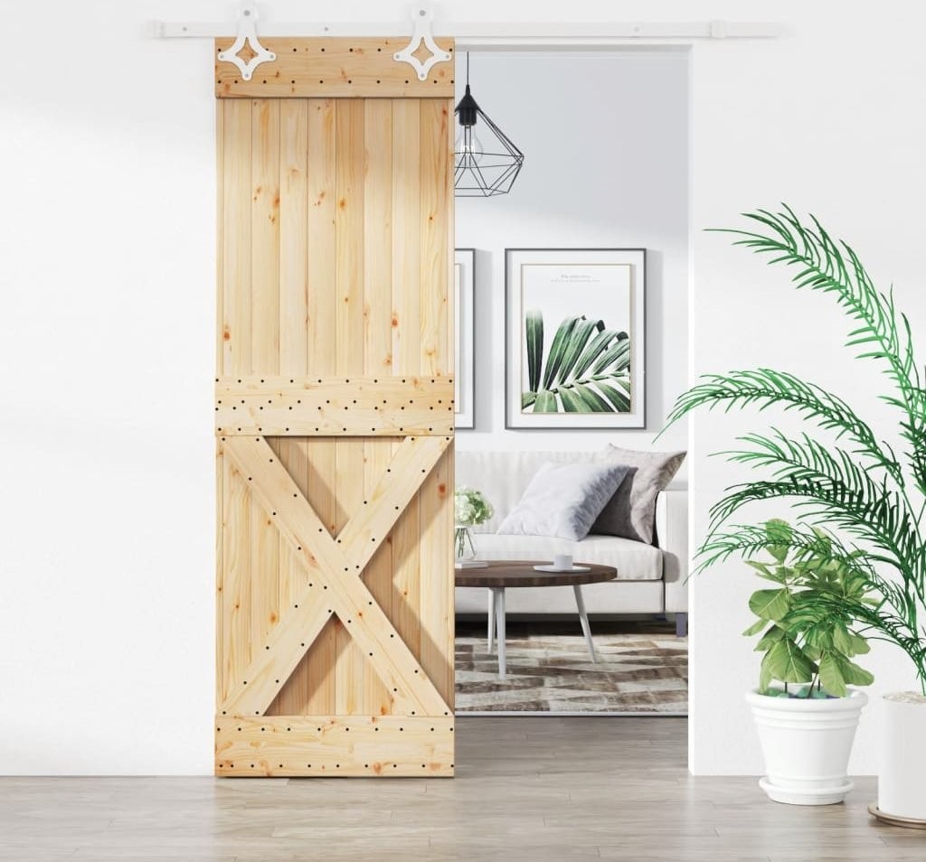 vidaXL Drzwi przesuwne z osprzętem, 70x210 cm, lite drewno sosnowe