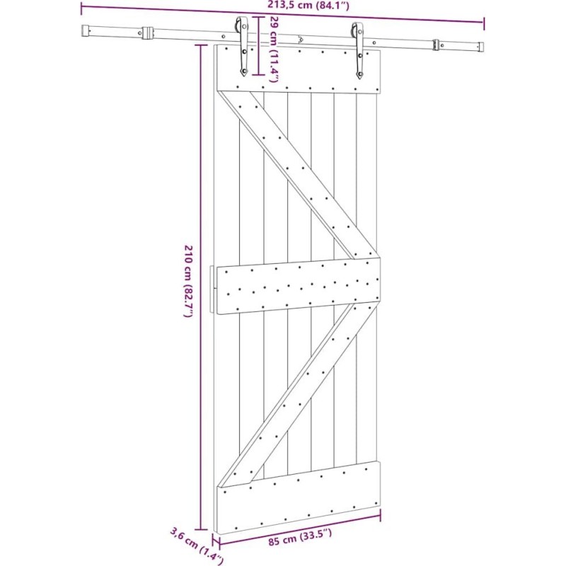 vidaXL vidaXL Drzwi przesuwne z osprzętem, 85x210 cm, lite drewno sosnowe