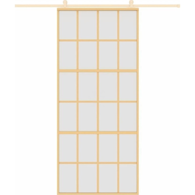 vidaXL Drzwi przesuwne, złote, 90x205 cm, mrożone szkło ESG, aluminium