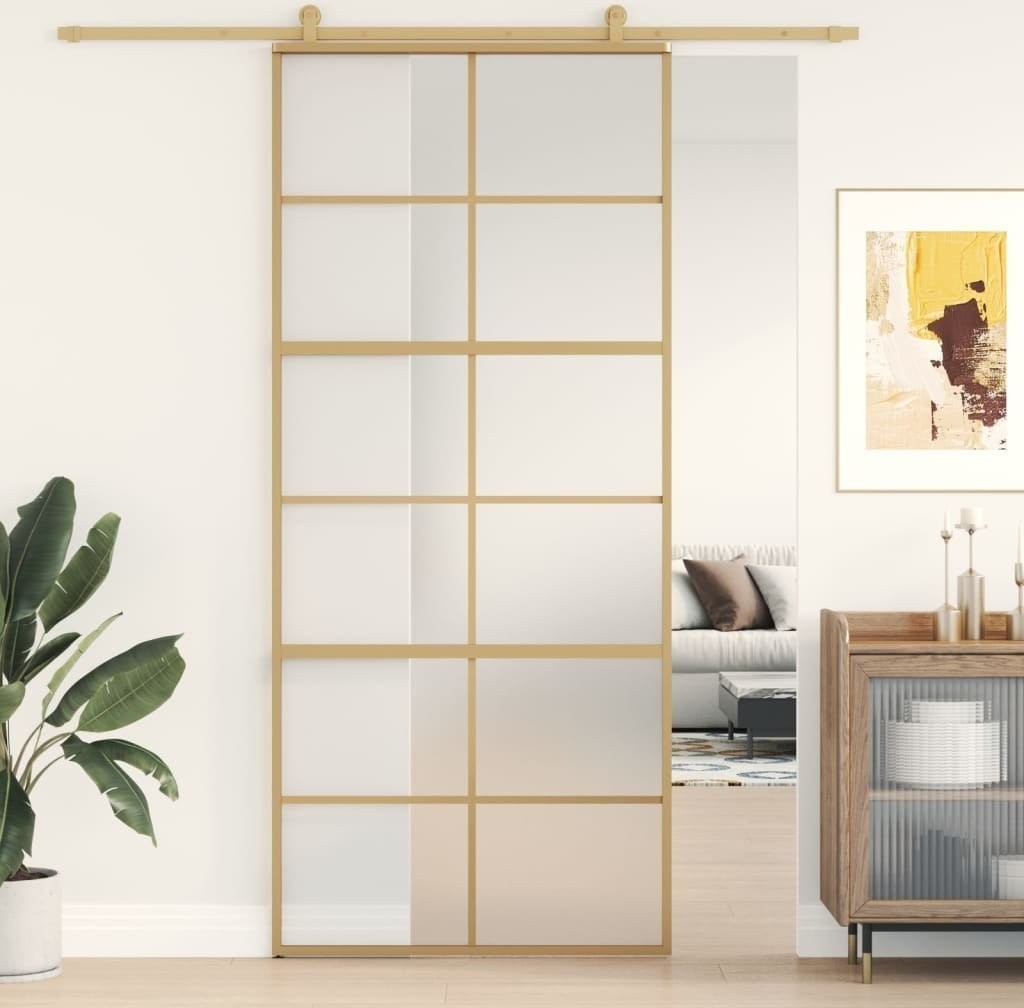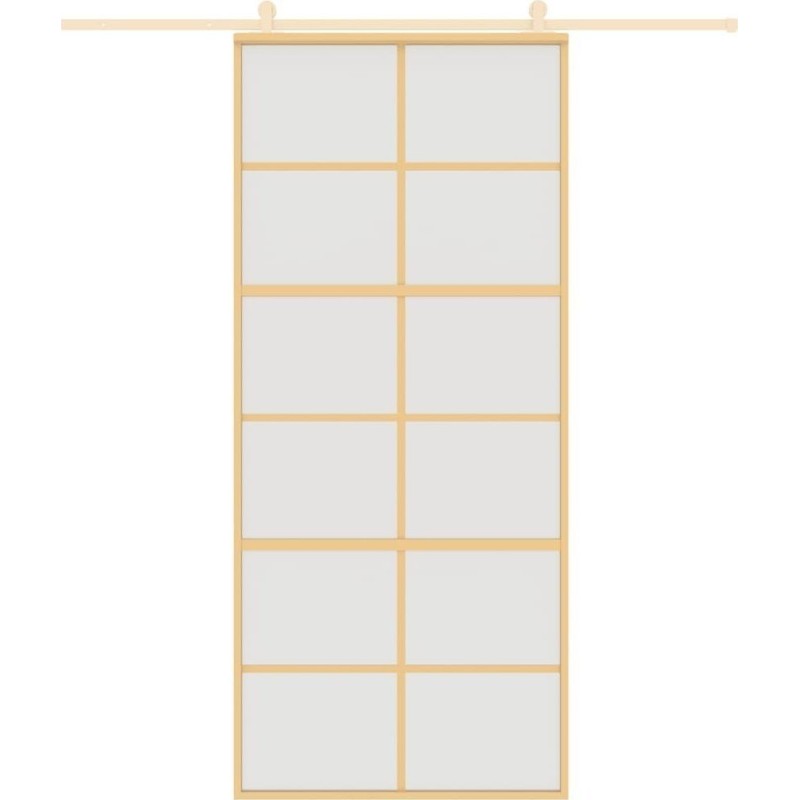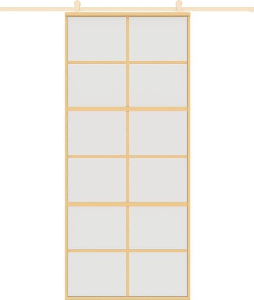 vidaXL Drzwi przesuwne, złote, 90x205 cm, mrożone szkło ESG, aluminium