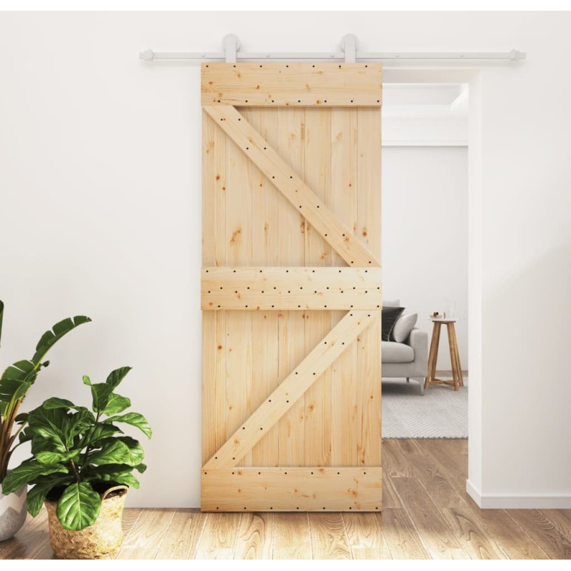 vidaXL vidaXL Drzwi przesuwne z osprzętem, 85x210 cm, lite drewno sosnowe