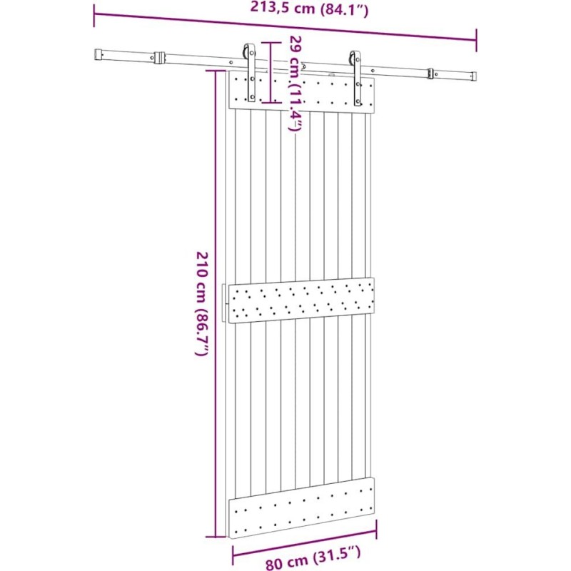 vidaXL Drzwi przesuwne z osprzętem, 80x210 cm, lite drewno sosnowe