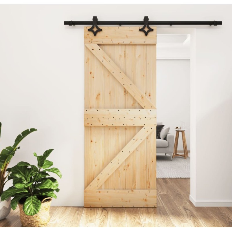 vidaXL vidaXL Drzwi przesuwne z osprzętem, 85x210 cm, lite drewno sosnowe
