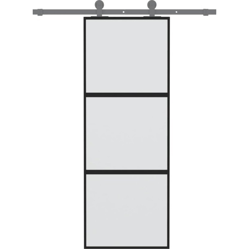 vidaXL Drzwi przesuwne, czarne, 76x205 cm, szkło hartowane, aluminium