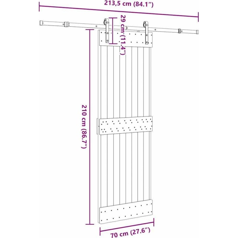 vidaXL Drzwi przesuwne z osprzętem, 70x210 cm, lite drewno sosnowe