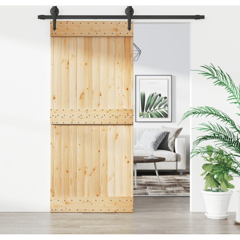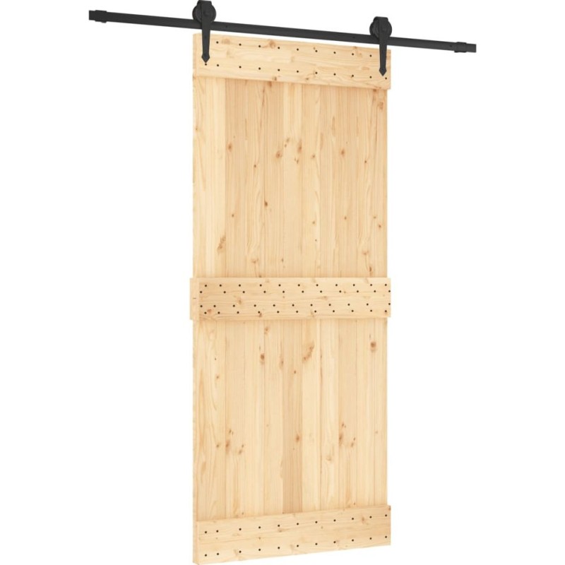vidaXL Drzwi przesuwne z osprzętem, 90x210 cm, lite drewno sosnowe