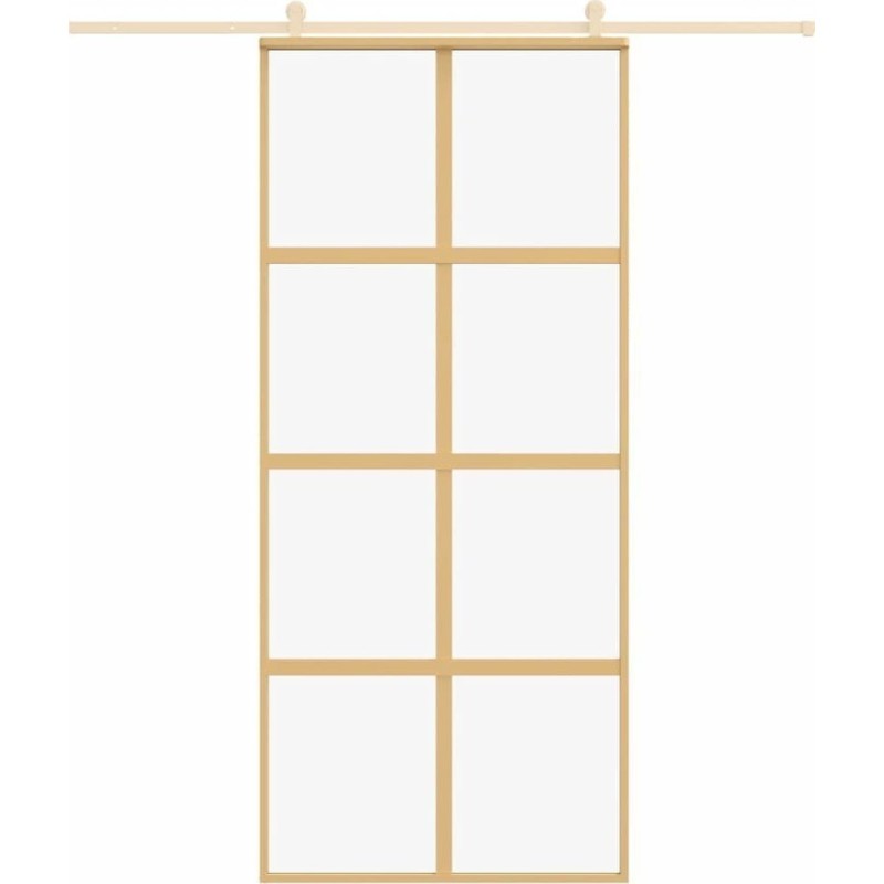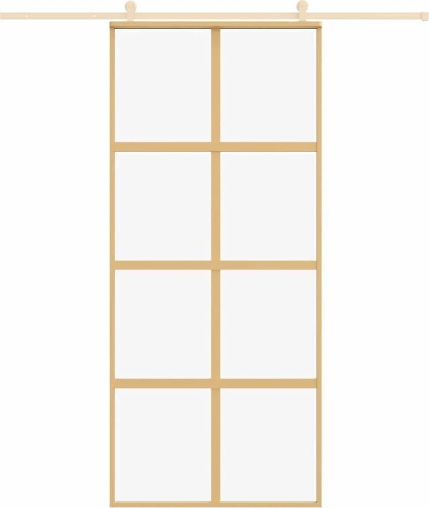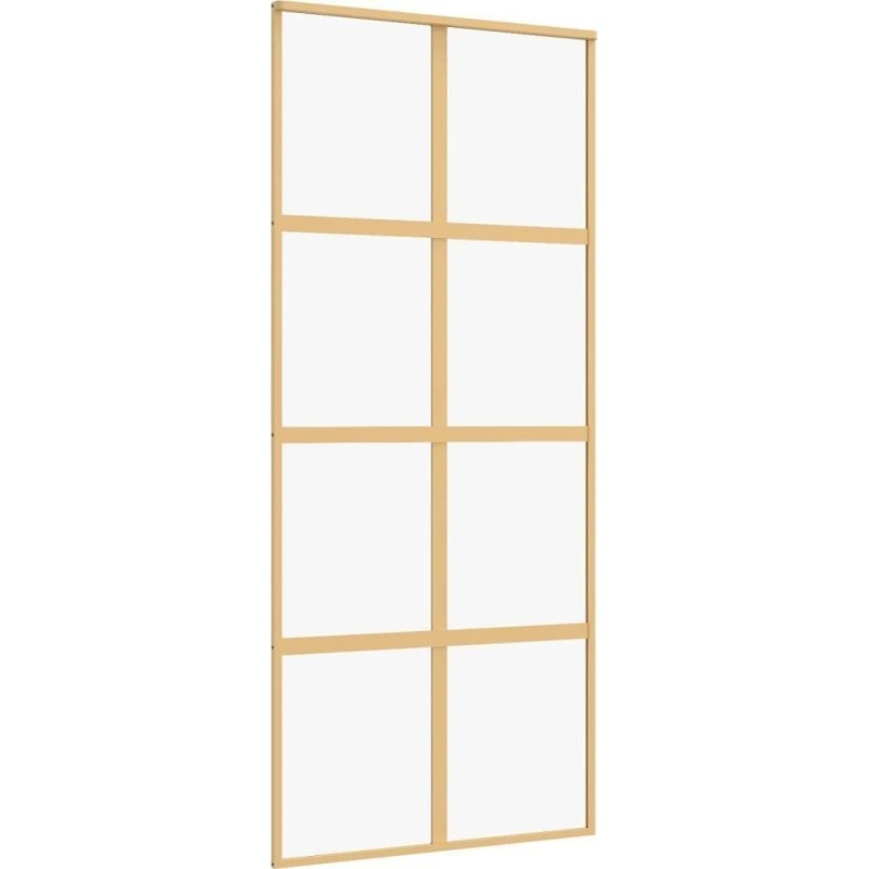 vidaXL Drzwi przesuwne, złote, 90x205 cm, przezroczyste szkło ESG
