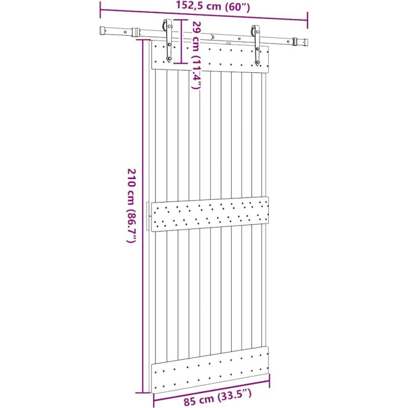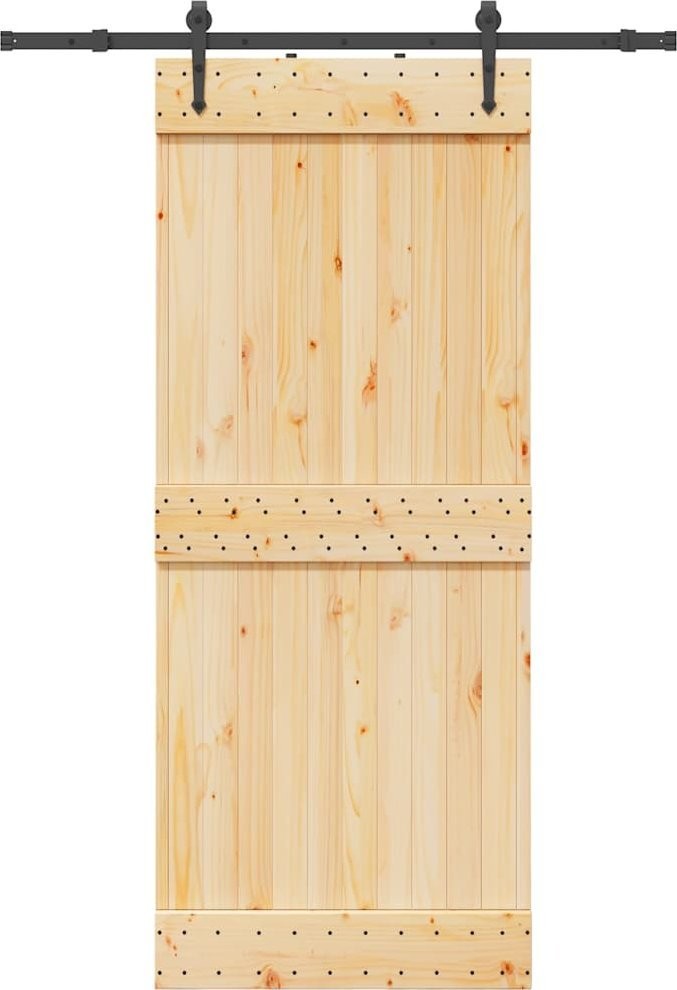 vidaXL Drzwi przesuwne z osprzętem, 85x210 cm, lite drewno sosnowe