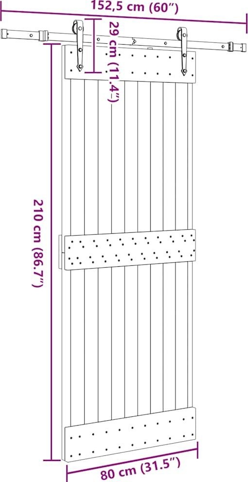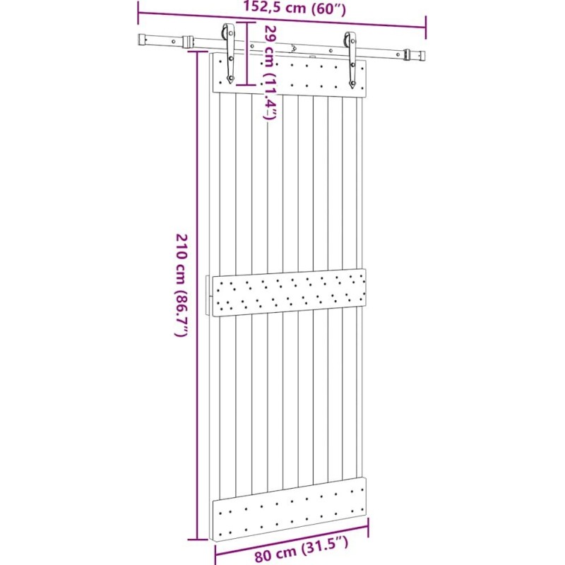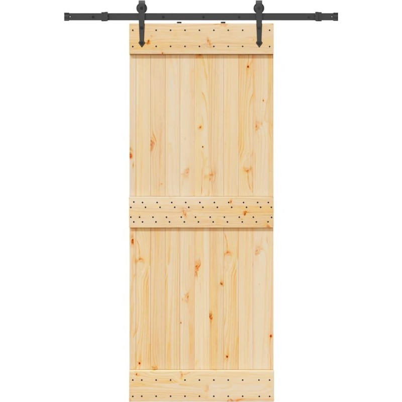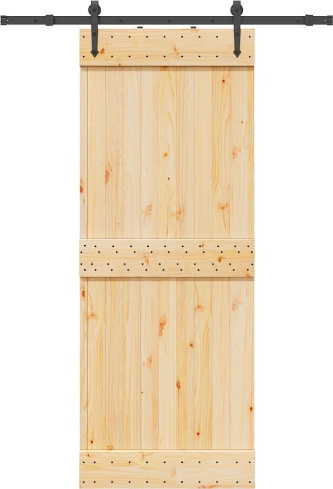 vidaXL Drzwi przesuwne z osprzętem, 80x210 cm, lite drewno sosnowe