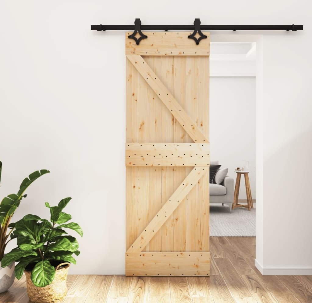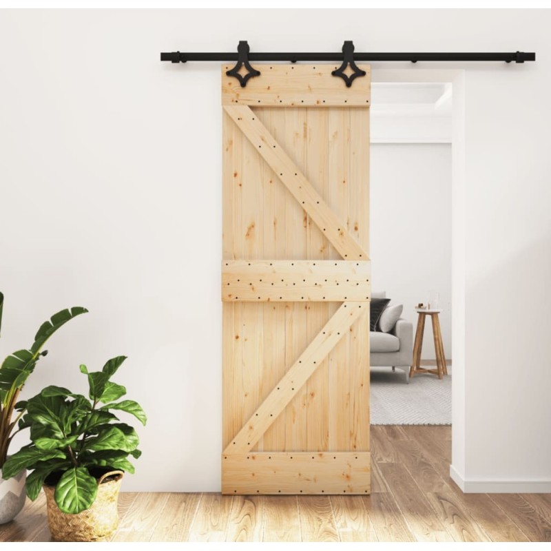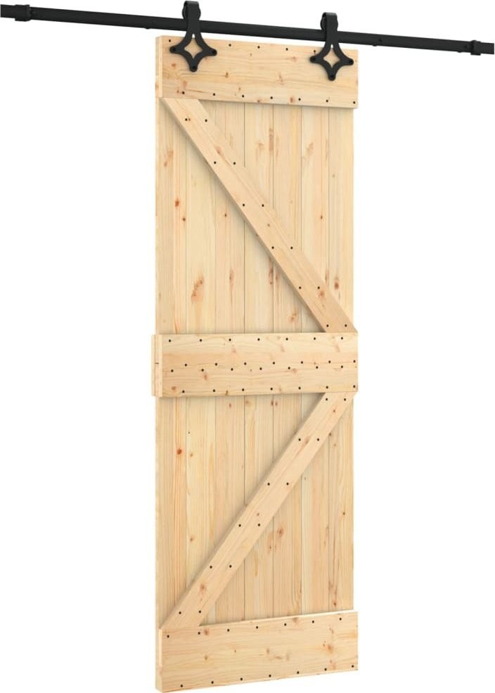 vidaXL Drzwi przesuwne z osprzętem, 70x210 cm, lite drewno sosnowe