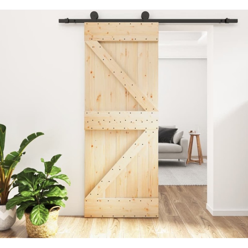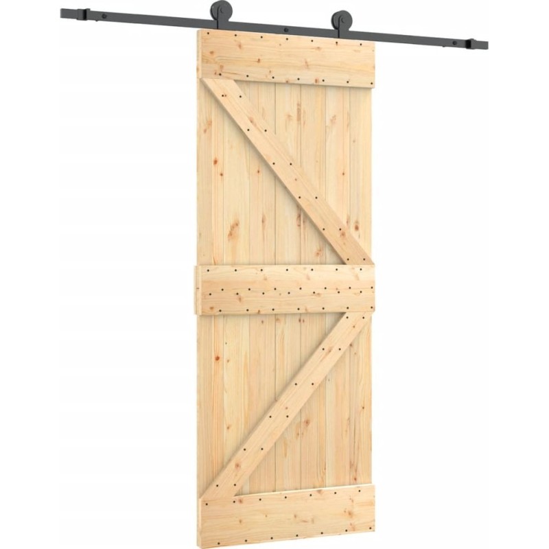 vidaXL Drzwi przesuwne z osprzętem, 70x210 cm, lite drewno sosnowe