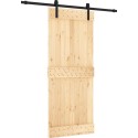 vidaXL Drzwi przesuwne z osprzętem, 85x210 cm, lite drewno sosnowe