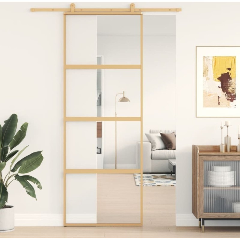 vidaXL Drzwi przesuwne, złote, 76x205 cm, przezroczyste szkło ESG