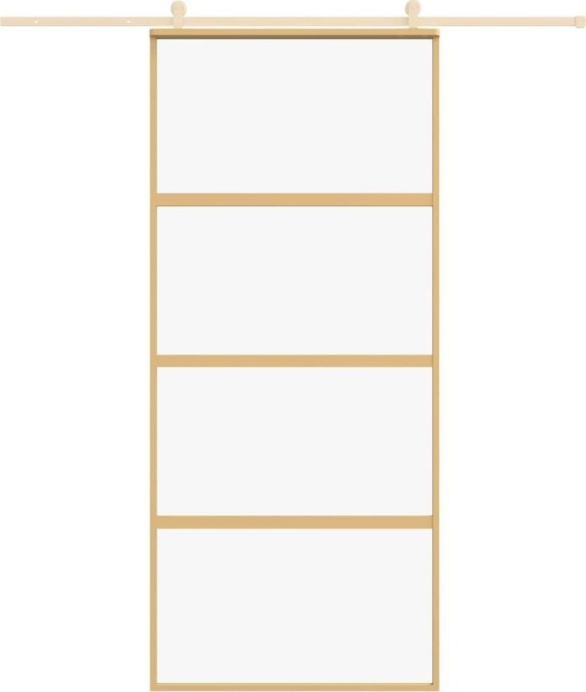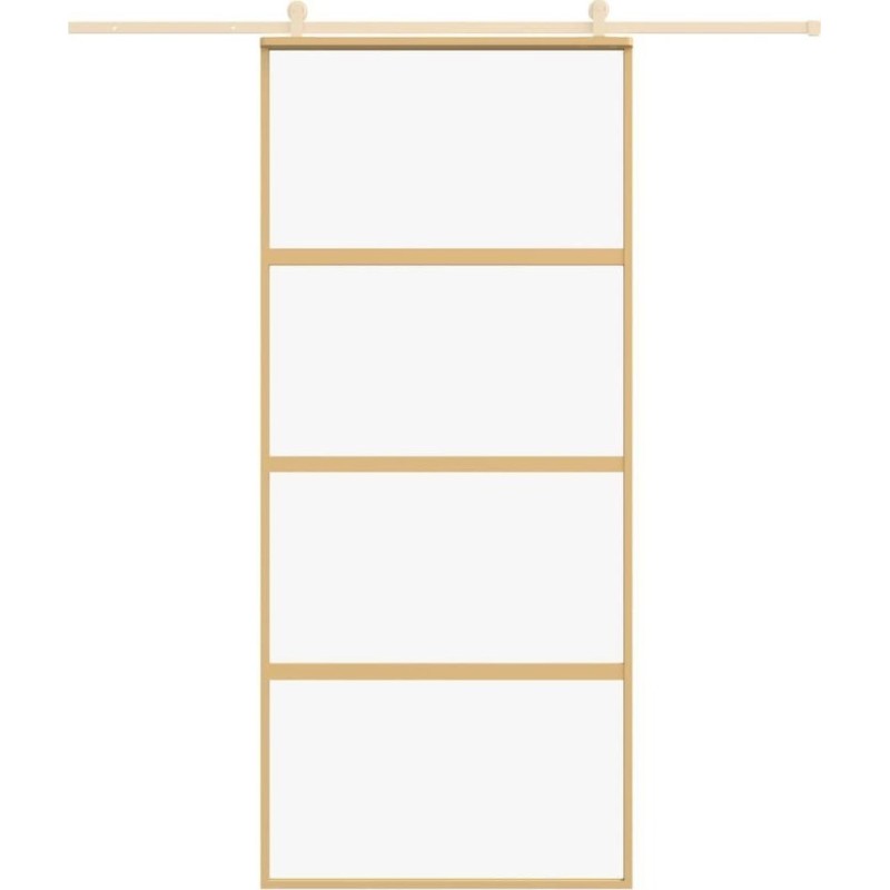 vidaXL Drzwi przesuwne, złote, 90x205 cm, przezroczyste szkło ESG