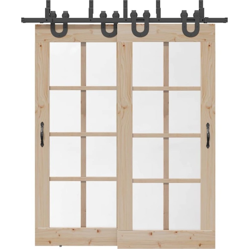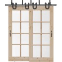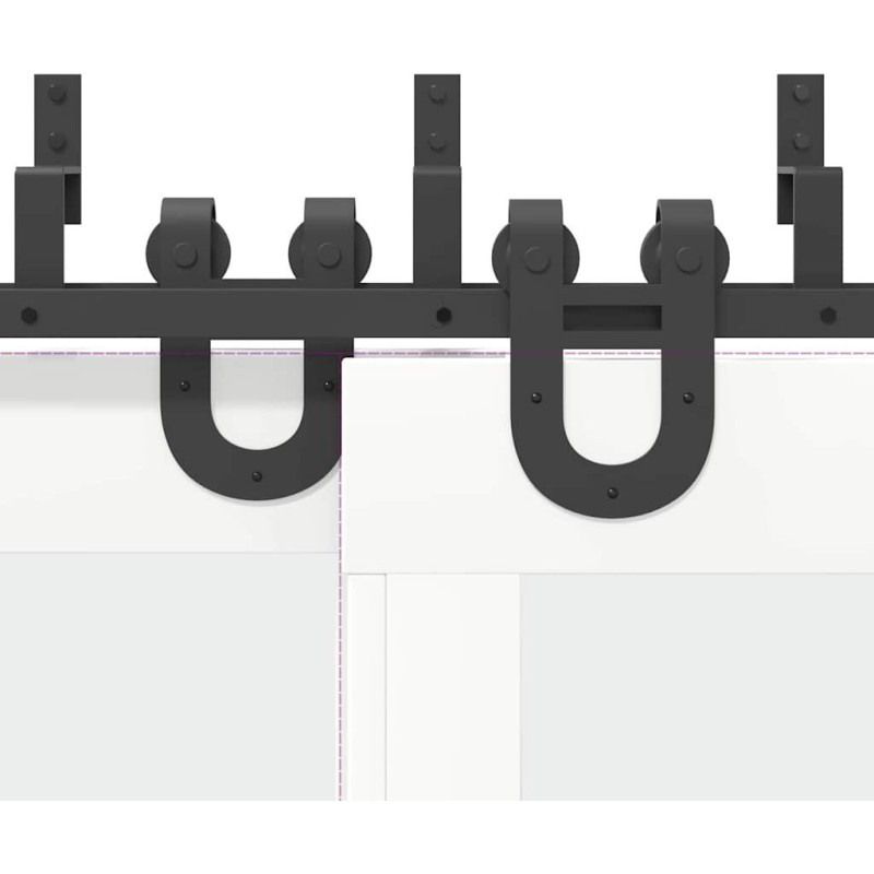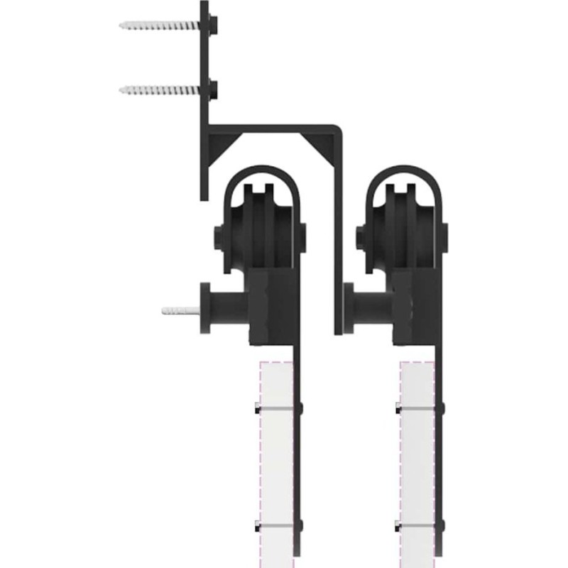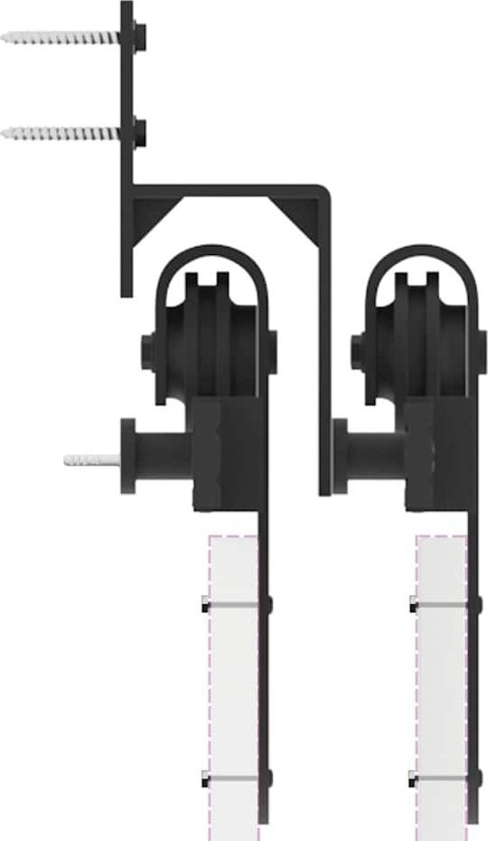 - Idealny do podwójnych drzwi do stodoły: gdy przestrzeń na ścianie jest ograniczona, zestaw uchwytów omijających drzwi do stodoły umożliwia niezależne przesuwanie dwóch drzwi na dwóch szynach bez konieczności zapewnienia dodatkowego miejsca.