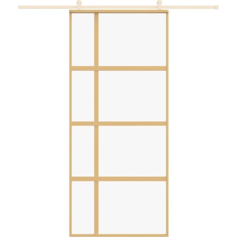 vidaXL Drzwi przesuwne, złote, 90x205 cm, przezroczyste szkło ESG