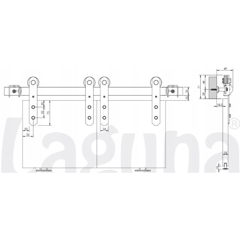 System charakteryzuje się maksymalnym obciążeniem do 20 kg, co gwarantuje solidność i bezpieczeństwo użytkowania. Dopuszczalna szerokość drzwi wynosi 63 cm, a grubość drzwi mieści się w zakresie od 25 do 30 mm, co czyni go wszechstronnym rozwiązaniem.